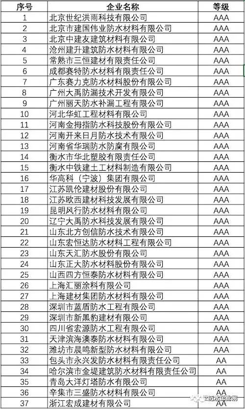 “企業(yè)信用等級評價”是市場準入、招標投標、評選評優(yōu)等活動的重要參考依據(jù),本次評選按照依據(jù)《中國建筑防水行業(yè)企業(yè)信用等級評價管理辦法》,從企業(yè)經(jīng)營、管理、財務(wù)、質(zhì)量、安全、優(yōu)良行為、合同履約等方面進行的綜合評價,是對防水企業(yè)在行業(yè)內(nèi)積極履行社會責任,信用記錄良好,誠信經(jīng)營的充分肯定。